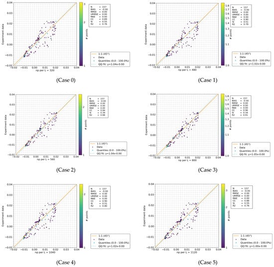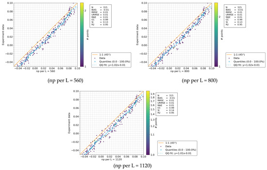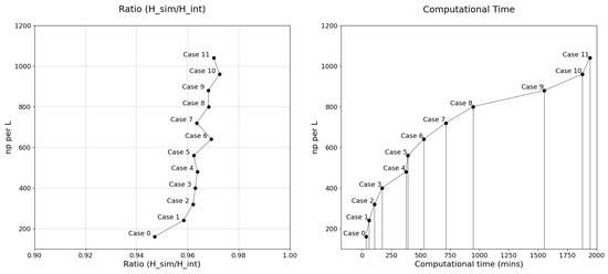 However, the computational cost for np per L = 1120 was substantially higher, requiring approximately 895 min, compared to 377 min for np per L = 800 and 210 min for np per L = 560. Thus, np per L = 560–800 offers a well-balanced compromise between computational efficiency and accuracy.