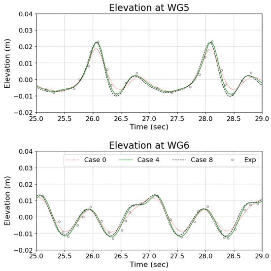 Elevation data at WG5 and WG6 were compared with the experimental data.