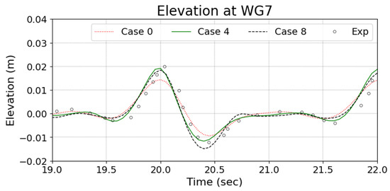 Elevation data at WG7 was compared with the experimental data.