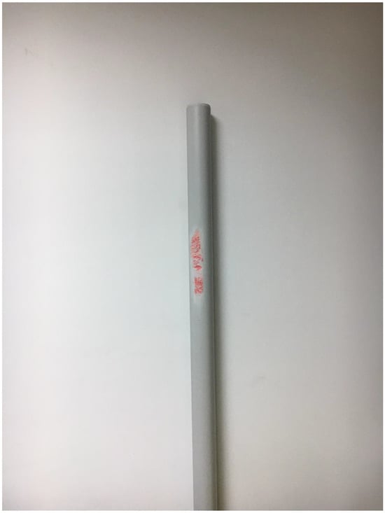 Damaged pipe used in the experiment (red-colored region is defined as “damage”).