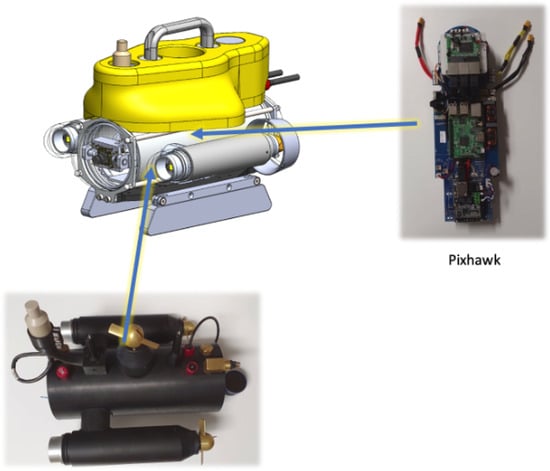 Vehicle’s pixhawk and thrusters used in the experiment.