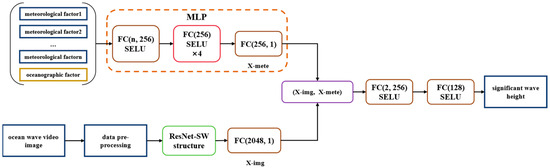 In summary, there is currently limited research on using deep learning algorithms and wave video images to achieve SWH inversion. In this study, a deep learning classification method for distinguishing wind waves and swell from nearshore instantaneous wave video images was proposed at first. Subsequently, a deep learning regression method based on CNNs and MLP was introduced to invert SWH from instantaneous wave video images, meteorological factors observation data, and oceanographic factor observation data. Additionally, the specialized models for wind wave and swell trained on the wind wave inversion dataset and the swell inversion dataset, and independent inversion was performed on the wind wave and swell samples in the test set. Finally, the impact of an improved loss function on the inversion accuracy was discussed. This paper is organized as follows: