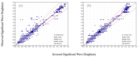 41] proposed a method for SWH inversion based on CNNs and Sentinel-1 SAR data, constructing an inversion dataset with over 3000 images. When compared with buoy measurements, the method achieved an RMSE of 0.32 m for the inverted SWH. Liu et al. [