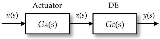 Furthermore, by substituting the values from Table 1 into Equation (9) and simplifying the transfer function, the actuator is determined as Equation (19).