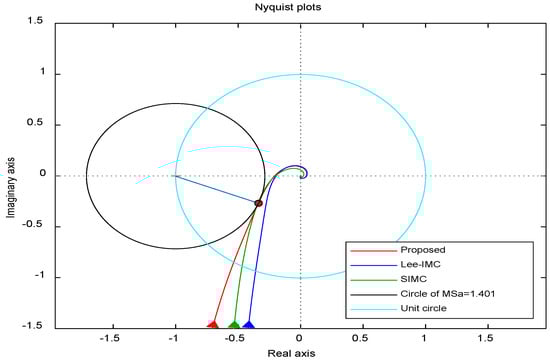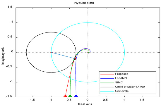 Figure 15’s Nyquist plots and MS circle demonstrate that the Lee-IMC method possesses the lowest MSa value, while the proposed and SIMC methods exhibit similar MSa values.