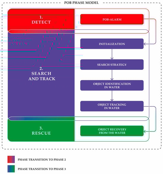 The detection of a POB scenario begins—according to the phase model introduced—with the detect phase. An international standard already exists for this phase []. However, before presenting the state-of-the-art research for its implementation, its specific requirements are described.