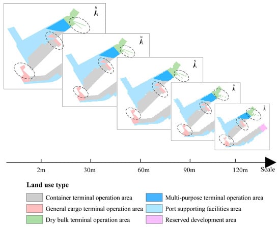 Variations in spatial characteristics of land use functions in the port area at different scales.
