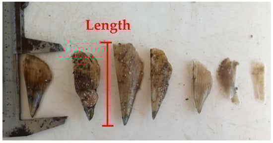 This study, due to its limited study period, partially confirmed the species’ initial rapid shell growth, followed by slower growth thereafter. The latter has also been observed in P. nobilis populations along the Turkish coastline [41] and in the Adriatic Sea [42], as indicated in Table 1. Likewise, lab experiments [15] demonstrated that, up to a certain shell length (around 5.82 cm, approximately nt2 in our study), fan mussels initially exhibit preferential growth in the length direction in shell length, then the shell widens, and the shape of the shell finally elongates again.