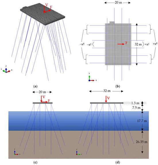 The numerical models of both SPSI8×8 and SPSIjetty marine structures were verified by Koronides et al. [20] through equilibrium checks and comparisons with existing studies. Additionally, the reliability of these models is verified in the present study, as they produce results consistent with findings from previous studies employing similar boundary conditions, as detailed in Section 6. Although experimental data would be valuable for further validating the numerical analyses, such data are currently unavailable.