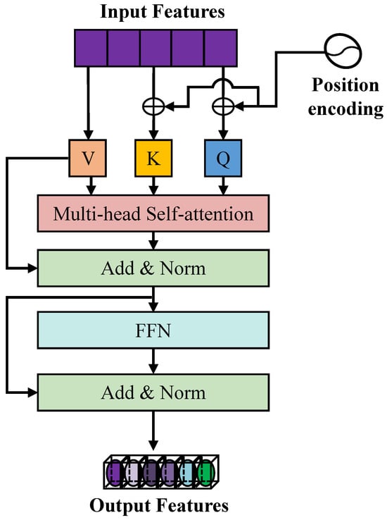 where , , and are learnable weight matrices. The self-attention mechanism is then applied to calculate the attention scores by taking the dot product of the query and key matrices, followed by a softmax operation to obtain the attention weights. To capture global context effectively, multi-head attention is employed, which allows the model to jointly attend to information from different representation subspaces: