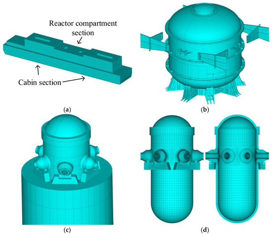 Structural model. (a) Floating nuclear power plant; (b) containment; (c) reactor pressure vessel; (d) RPV grid.