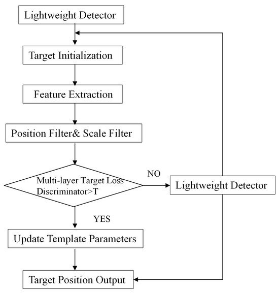 If the conditions mentioned above are not met, it signifies that the present tracking status is unsuccessful, and . When , the re-detection function is activated, which is discussed in Section 4.1 regarding the lightweight detection network.