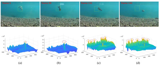 The aforementioned trackers lack the capability of re-detection after target loss. Recently, trackers incorporating re-detection mechanisms have emerged. Ref. [18] introduced a high-precision target tracking method that includes anomaly tracking status detection and recovery. Ref. [19] proposed a joint local–global search mechanism, while Ref. [20] focused on a coarse-to-fine re-detection and spatial–temporal reliability evaluation. Ref. [21] explored the exploitation of both local and global properties. In scenarios where marine objects exhibit rapid movements, encounter obstruction by aquatic vegetation, or undergo significant scale variations, inappropriate sampling and model updates lead to template drift issues [22,23], as illustrated in Figure 1. This template drift ultimately results in tracking failures. The attenuation and scattering of light result in shortcomings such as poor contrast in underwater images. Additionally, the motion deformation of marine organisms poses a significant challenge. However, the above mentioned methods rarely focus on addressing the deformation of marine organisms or the degradation of underwater images. Therefore, existing tracking algorithms face difficulties in direct application to underwater object tracking.