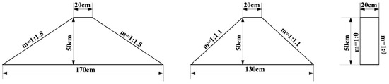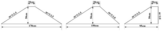Figure 5a shows the relationship between Kt and B/L for a wave height of 8 cm and a structural top width of 20 cm, with breakwater slopes of 1:1.5, 1:1.1, and 1:0, respectively (see Figure 6). The data in Figure 5a indicate that Kt exhibits a good correlation with the slope of the breakwater, increasing as the slope becomes steeper and decreasing as B/L increases. This means the transmission coefficient is smallest for a slope of 1:1.5 and largest for a vertical breakwater with a slope of 1:0. The greater friction, collisions, and wave breaking against the sloping structure lead to more energy dissipation than in a vertical breakwater, resulting in a significant reduction in wave height behind the structure and lower Kt.