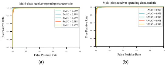 ROC curves for the radar dataset. (a) The original dataset, and (b) the dataset after knowledge-guided augmentation.