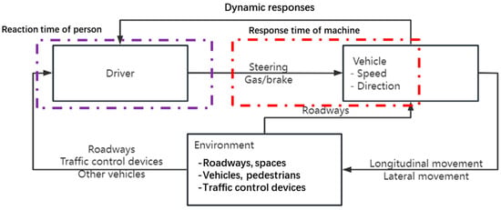 In terms of reaction time, the perception–response times in road, pedestrian, bicycle, railroad, drone, and air traffic are generally measured in seconds, while in waterway traffic, this time is typically measured in minutes. As shown in Figure 2, this difference arises from collision-avoidance decision-making processes; in road, pedestrian, bicycle, railroad, drone, and airplane traffic, these processes usually involve a single operator (such as a driver or a pilot). The reaction time in these modes mainly consists of the operator’s perception–response time.