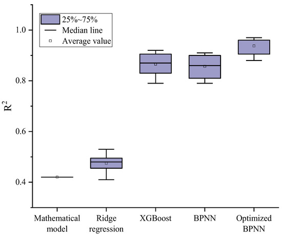 Figure 9 further illustrates the distribution of R2 values for each model on the test set using boxplots. The optimized BPNN demonstrates both a higher median and average R2 compared to other models, and it exhibits a narrower range of variance, suggesting greater robustness and generalization capability.