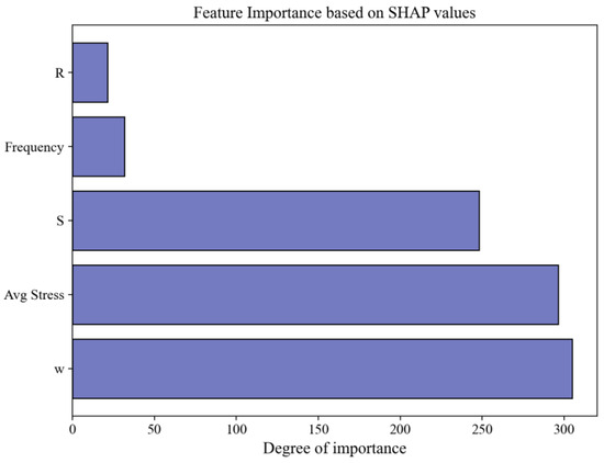 Figure 15 illustrates the importance of each feature in predicting fatigue life, with w identified as the most influential factor, followed closely by Avg Stress. These two features capture critical information about fatigue life and exert substantial influence on the model’s output, indicating their strong correlation with fatigue resistance. The feature S also plays a significant role, though its impact is secondary to w and Avg Stress, suggesting it contributes meaningfully to predictions but to a lesser extent. In contrast, Frequency and R exhibit minimal influence on the model’s predictions, implying they have limited relevance in determining fatigue life within this dataset. This distribution of feature importance highlights the primary roles of w, Avg Stress, and S as key drivers in the model, while Frequency and R appear to play marginal roles. These findings enhance the model’s interpretability by clarifying which factors are most critical in influencing fatigue life predictions.