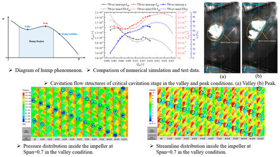 - Liu, Y.; Wang, D.; Ran, H.; Xu, R.; Song, Y.; Gong, B. RANS CFD analysis of hump formation mechanism in double-suction centrifugal pump under part load condition. Energies 2021, 14, 6815. [Google Scholar] [CrossRef]