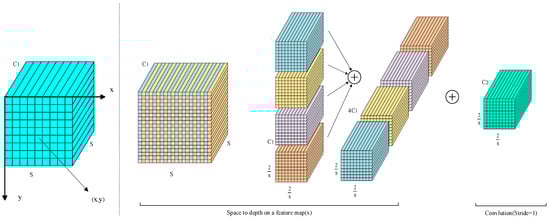 Then, the sub-feature maps are merged along the channel dimension to form a new feature map . It undergoes downsizing in the spatial domain by a scaling factor of and an expansion in the channel dimension by . In other words, the original feature map is transformed into through this process.