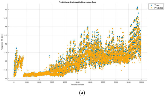 Internal parameters of regression model can be chosen manually; however, the optimized regression methods can select optimized internal values by using hyperparameter optimization. Some of these options can strongly affect the regression method’s performance. Accordingly, Optimizable Regression Tree, Optimizable SVM, and Optimizable ANN methods are applied herein to automate the selection of hyperparameter values [32]. The Bayesian optimization technique has been used to tune hyperparameters in terms of the mean squared error (MSE) as an objective function. Model evaluation is implemented by statistical parameters and test datasets. The coefficient of model determination consists of R-squared (R2), mean squared error (MSE), mean absolute error (MAE), and root mean square error (RMSE):