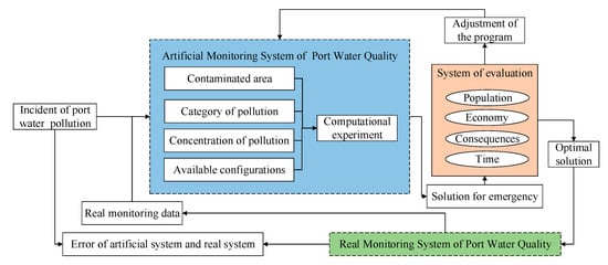 In the process of learning and training, the artificial water quality monitoring system in port waters is the core of the whole complex system, which realizes the management and control of the whole process. By combining the real monitoring system with the artificial monitoring system, the operating status of the system can be dynamically predicted and appropriate measures can be taken. The operation of the artificial monitoring system could improve the reliability and practicality of the real system. In the case of an unexpected pollution event in the port waters, the artificial system could provide potential optimal solutions to relieve the relevant impact.