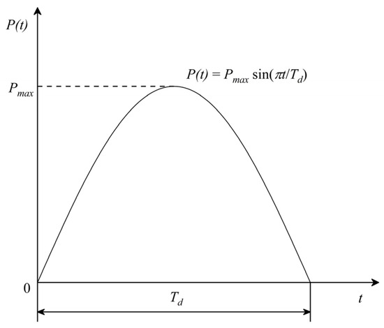 where is the maximum value of the impact load and is the duration of the impact load. The curve of the impact load is shown in Figure 8.