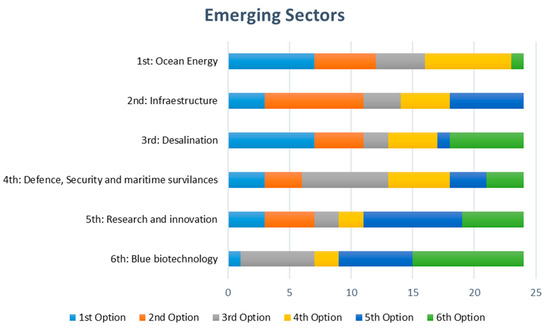 The second question consisted of ordering the different emerging economic sectors that make up the B.E. from the most to least important (Figure 6).