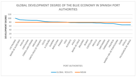 On the other hand, this study highlights that 13 of the 28 Spanish port authorities exhibit a level of overall B.E. development that exceeds the general average. This is due to the boost in the activities of established sectors that have a higher degree of development than emerging ones. For this reason, it is considered necessary to promote the emerging economic sectors as they have greater capacity for growth.