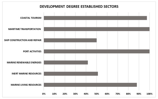 Degree of development of the sectors established in the Spanish port system as a whole. Source: own source.