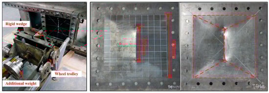 Cai et al. [13] carried out some wedge-shaped-ice–plate impact tests that can provide some validated data for the accuracy of the theoretical model in this paper. The experimental set-up used in the experiment is shown in Figure 7. The material parameters of the plate specimen used in the experiments are shown in Table 2. Table 4 gives the dimensions of the plate specimen, the impact mass and the initial impact velocity.