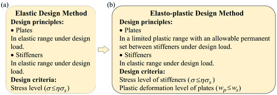 Design method of ship structure: (a) the elastic design method; (b) the elastic-plastic design method [37].