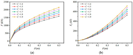 The relationship between the energy-absorption reduction factor and the plastic deformation reduction factor can be obtained by comparing the Equation (22) corresponding to the ice/rigid impact.