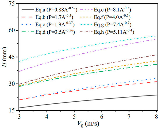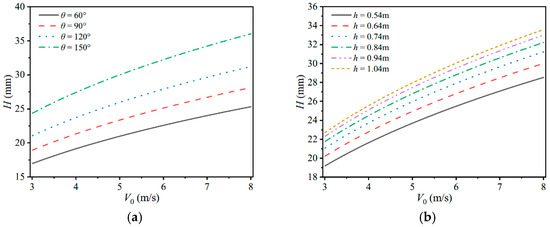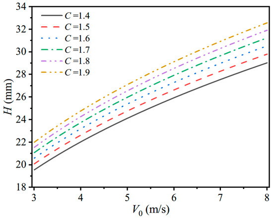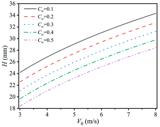 According to Equation (13), the relationship between the initial net impact velocity and the plastic deformation of the ship plate can be obtained as follows