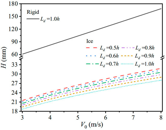 Substituting Equation (38) into Equation (37), the relationship between the crushing length of ice floe and the ice loss velocity parameters Vi is obtained