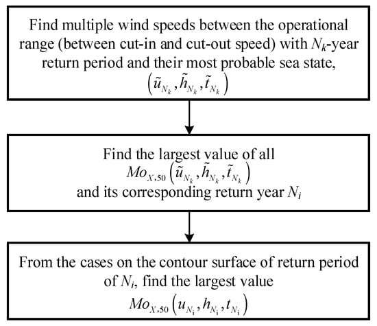 where is the environmental condition on the N-year environmental contour. The procedure of the modified ECM is shown in Figure 1 when considering combined wind and wave loads. Multiple contours within the operational wind speed range are checked. The most probable value of the extrapolated extreme distribution.