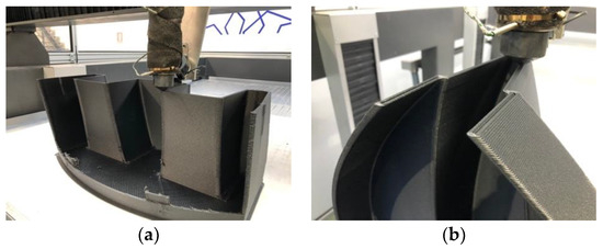 The manufacturing technology parameters needed to be optimized as a function of the material, geometry, and desired mechanical properties of the final piece. Therefore, fabrication was performed and the adherence and resistance of the finished product were tested and validated by the authors [56]. Figure 6a,b show the hull being manufactured. Figure 6c depicts the final hull after coating.