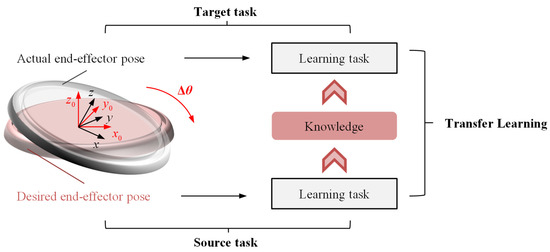 - Step 3: Obtain the source domain and target domain datasets. For the selected two types of configurations, nominal actuated joint variables are calculated by substituting them into Equation (2) and used as inputs for both the source and target networks. The desired poses and the actual poses obtained in steps 1 and 2 are taken as the outputs of the source and target networks, respectively.
