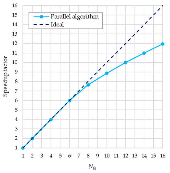 In this paper, the parallelization of the proposed model is implemented using OpenMP, primarily due to its ease of implementation. OpenMP is particularly well suited for shared-memory architectures, such as those found in common personal computers, where multiple processors share access to a unified memory pool. It offers a straightforward and efficient method for parallelizing code through compiler directives, enabling the distribution of workload among available cores [78]. These directives allow for the identification of the parallelizable sections of code, such as loops or sections, and express parallelism without the need of significantly modifying the code, decomposing the domain or delving into low-level details of thread creation and synchronization. Hence, the current approach can be readily implemented in similar mild-slope models. Furthermore, the performance evaluation of the parallel implementation (facilitated with OpenMP) reveals a notable decrease in actual simulation times, rendering the model valuable for engineering applications.