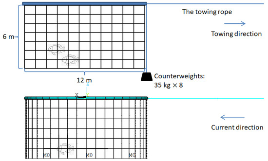 To reduce the number of elements, dense twines are simplified into evenly distributed horizontal and vertical lines, as shown in Figure 1. The new structure has the same total cross-section area, tensional stiffness and mass as the original one. However, the new structure has a smaller projected area than the original structure. Thus, to get the same dynamic load, the drag coefficient is adjusted. The structural properties are listed in Table 1. More information on the FEM model can be found in research [20]. To calculate the volume fast and automatically, the coordinates of the nodes are recorded and input into a CAD software. The surrounded area forms a solid body, and then the volume is calculated.