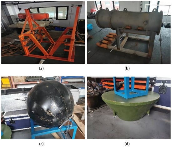 Target objects used in the experiment: (a) frame-type structure; (b) pressure tank; (c) sphere structure; (d) platform structure.