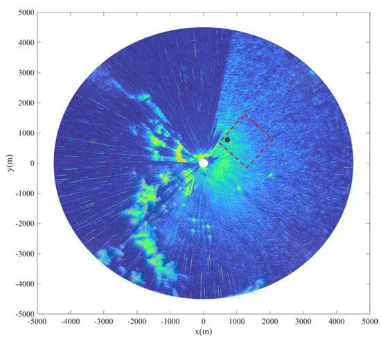 Interference from other marine radars produces radial noise lines in radar images, as shown by the dense radial pixel lines in Figure 1. In this study, the radar images collected are from shore-based X-band radar, which also is affected by interference from targets like ships, which appear as bright spots in the radar images. The pre-processing process of the radar images is shown in Figure 2.