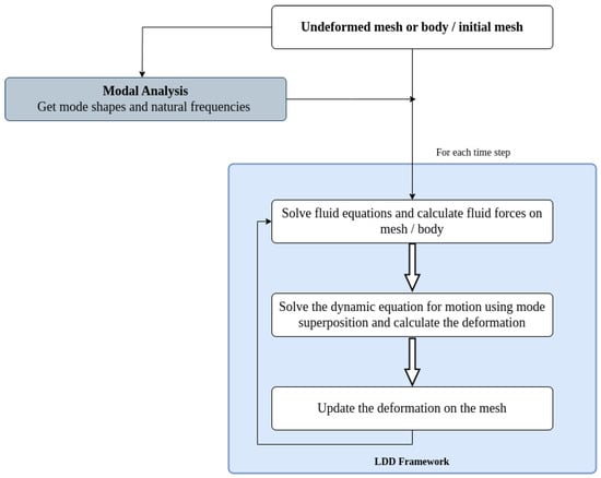 This paper discusses fluid–structure interaction (FSI) modeling using the two-way weak coupling approach. Specifically, this paper details the governing equation of the LDD method and the mode superposition technique in