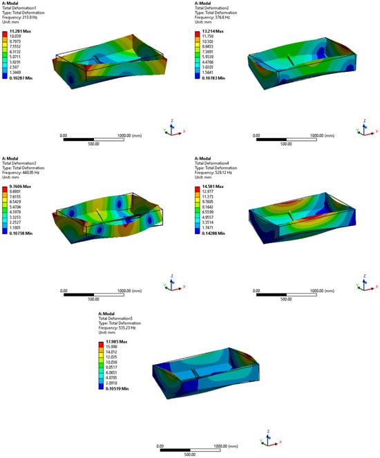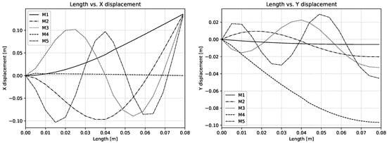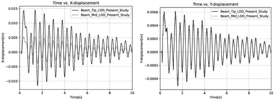 31]. Modal superposition is a useful technique for evaluating structures that are subjected to dynamic loads due to its computational efficiency and simplicity. However, when dealing with large structural deformations, the accuracy of this method tends to decrease. This is because modal superposition assumes linear behavior and uncoupled modes, which may not hold true in scenarios involving significant nonlinearity or mode coupling. Despite these limitations, modal superposition remains a widely used and valuable tool, especially when applied within its valid range [