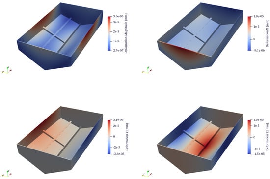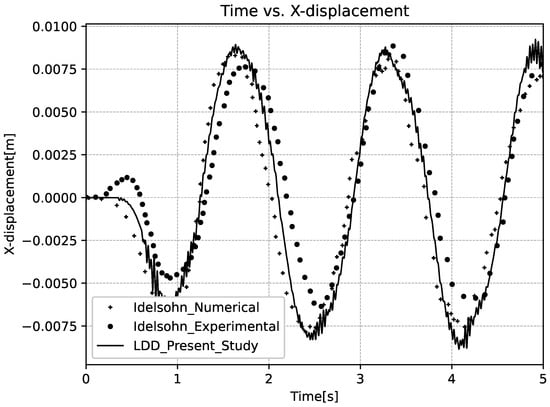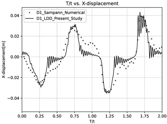 36]. Using the mode superposition method with LDD, structural deformation is calculated for the fluid load using precalculated mode shapes and natural frequencies from the modal analysis. This approach leads to stable, robust, and computationally efficient FSI simulations. The method enables fluid-induced structural deformation to be weakly coupled into the flow solver. The deformation is obtained by using direct integration. The flow particles and vertices of the structure are advected in Lagrangian coordinates. This results in Lagrangian–Lagrangian coupling in space, while there is weak or explicit coupling in time. This ensures a more accurate representation of the interaction between fluid and structure in ship and offshore hydrodynamics. The efficiency of the LDD and Mode Superposition methods, operating directly on surface meshes, may lead to practical and effective ship and offshore hydrodynamic simulations.