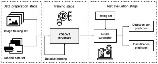 Process of designing the YOLOv3 detection model.