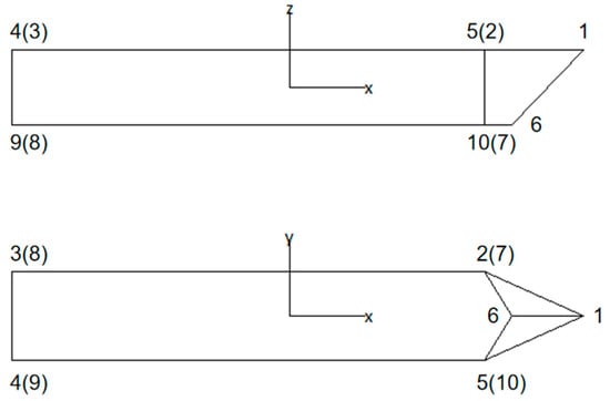 Based on the measured hydrological data in a certain sea area of Hainan Province, tables were established for the probability distribution of significant wave heights in different directions with various characteristic wave heights and directions (Table 1), the wave conditions (Table 2), and the flow velocity conditions (Table 3). The floating platform adopts a semisubmersible platform; the main scale parameters are shown in Table 4, the geometric parameters are shown in Table 5, and the geometric shape is shown in Figure 3.
