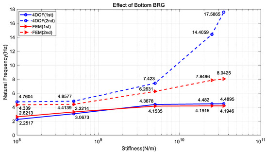 Figure 15, it can be observed that the analysis results from the 4DOF model and FEM exhibit relatively similar trends for each imbalance case. Since the first natural frequency occurs around 4 Hz, the overall trend in the analysis results up to 3 Hz shows a monotonic increase. However, it can be noted that Case 1 exhibits larger deviations compared to Cases 2 and 3. This is due to the mass imbalance imposed solely on the Thom disk, as shown in case 1 of