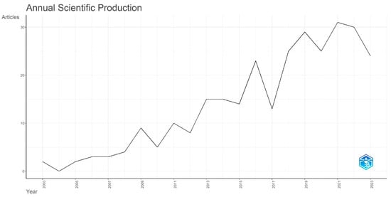 This study examined materials published in Scopus Index journal outlets from 2003 to 2023 (Figure 2). It found that the number of articles studying climate change, marine biodiversity, and adaptation increased from about 2 publications to over 25 publications by the end of 2023. Overall, there has been a consistent rise in the number of publications addressing these topics. This increase can be attributed to the growing challenges faced by marine biodiversity due to the escalating impact of climate change.