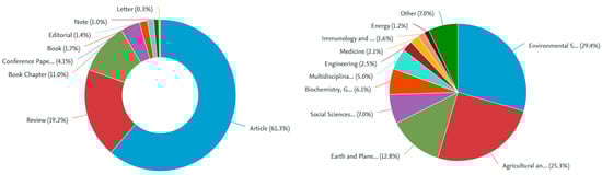 This study revealed that most publications (61.3%) consist of journal articles (Figure 3). Additionally, a significant portion of the publications were in the form of reviews, bringing the total combined percentage of articles to over 80%. On the other hand, book chapters accounted for approximately 11% of the publications, indicating that the issue of climate change and marine biodiversity has not received much attention in this format. Similarly, conference proceedings have not extensively covered the topics of climate change and marine biodiversity adaptation. The Scopus Index accounted for a mere 4.1% of the publications, which could be attributed to the complexity and high financial costs of conducting such studies.